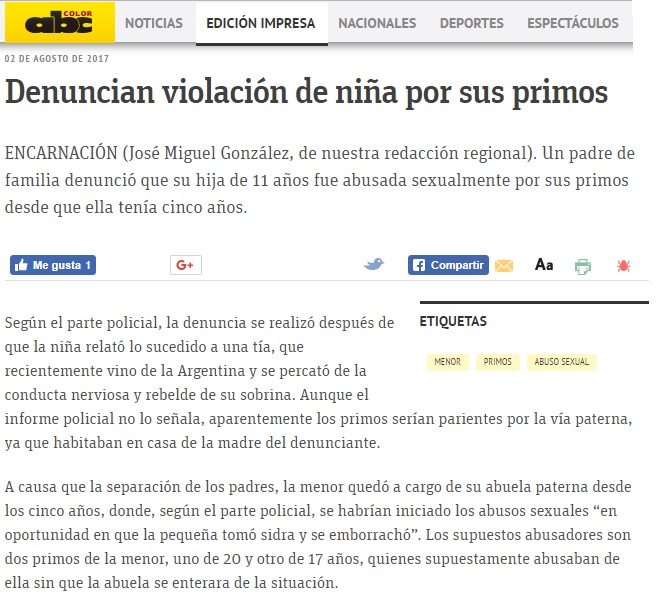 Denuncian violación de niña por sus primos