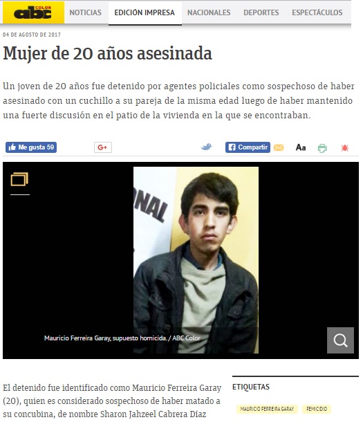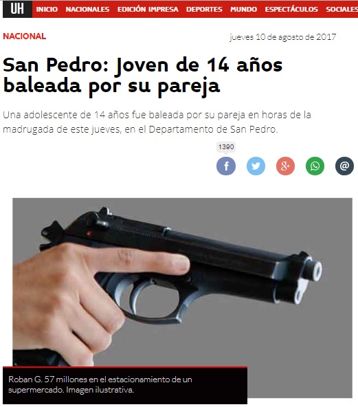 San Pedro: Joven de 14 años baleada por su pareja