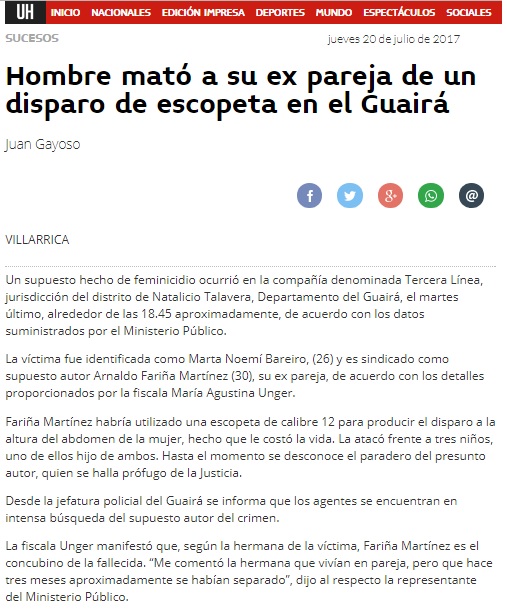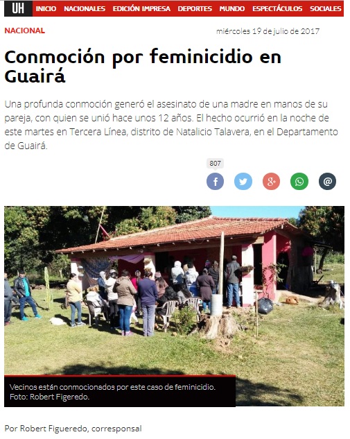 Conmoción por feminicidio en Guairá