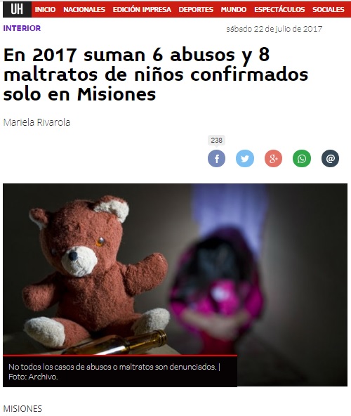 En 2017 suman 6 abusos y 8 maltratos de niños confirmados solo en Misiones