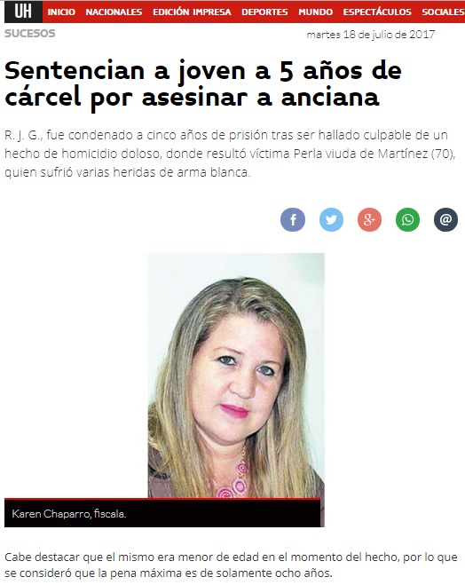 Sentencian a joven a 5 años de cárcel por asesinar a anciana