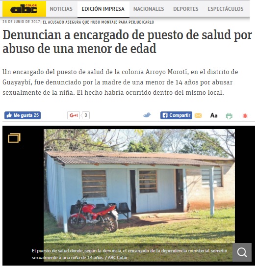 Denuncian a encargado de puesto de salud por abuso de una menor de edad
