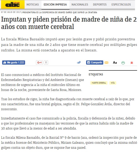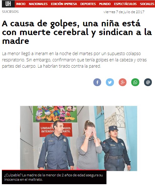 A causa de golpes, una niña está con muerte cerebral y sindican a la madre