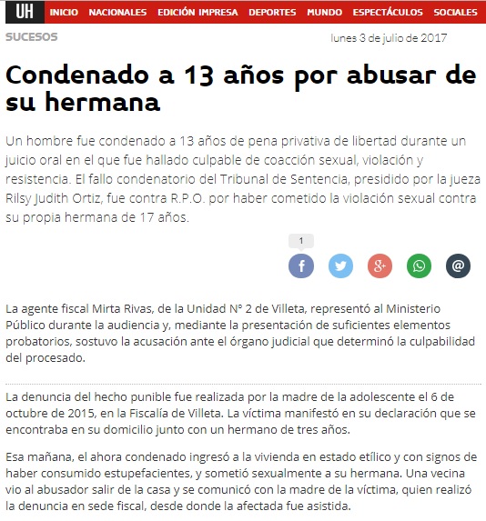 Condenado a 13 años por abusar de su hermana