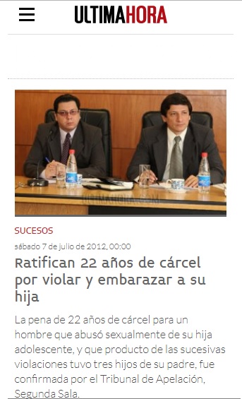 Ratifican 22 años de cárcel por violar y embarazar a su hija
