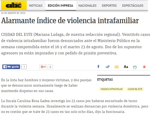 Alarmante índice de violencia intrafamiliar