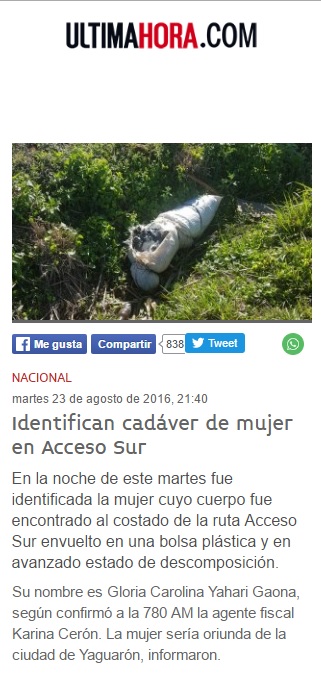 Identifican cadáver de mujer en Acceso Sur