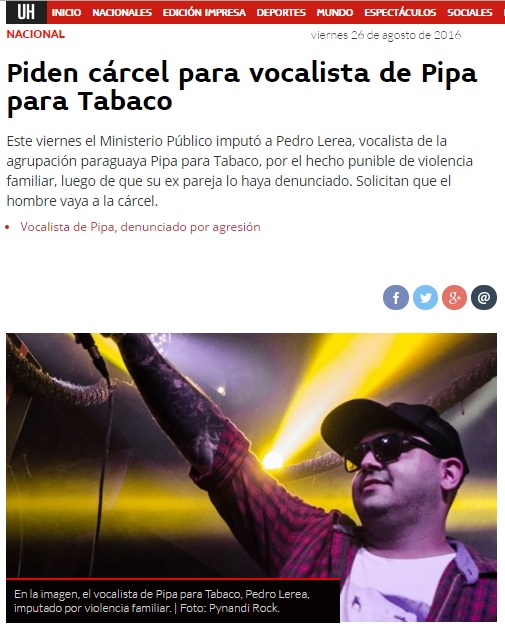 Piden cárcel para vocalista de Pipa para Tabaco