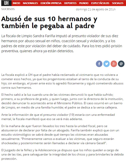 Abusó de sus 10 hermanos y también le pegaba al padre