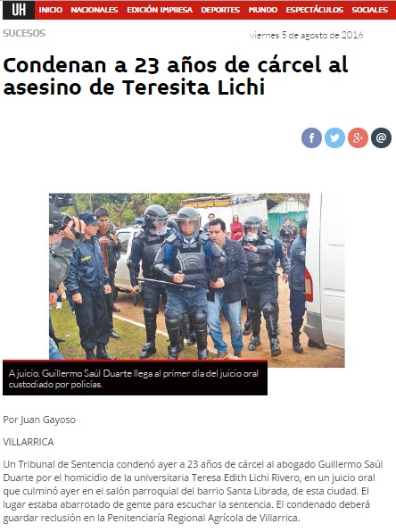 Condenan a 23 años de cárcel al asesino de Teresita Lichi