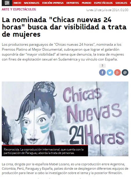 La nominada "Chicas nuevas 24 horas" busca dar visibilidad a trata de mujeres