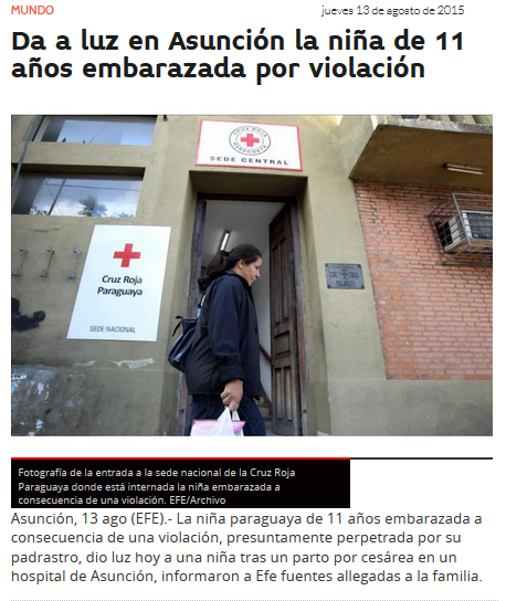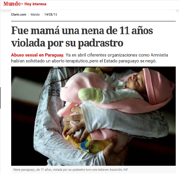Da a luz la niña paraguaya de 11 años violada por su padrastro