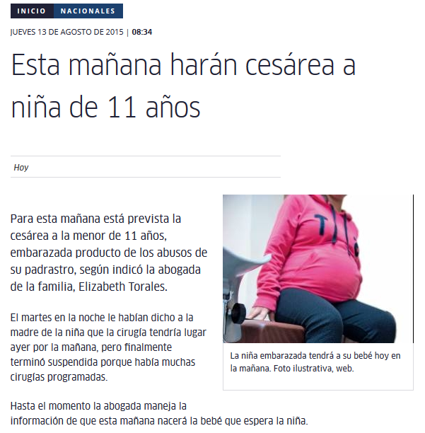 Esta mañana harán cesárea a niña de 11 años
