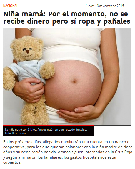 Niña mamá: Por el momento, no se recibe dinero pero sí ropa y pañales