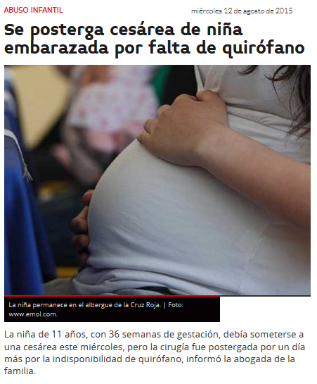 Se posterga cesárea de niña embarazada por falta de quirófano